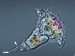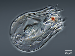 Bdelloid rotifers are survival artists, not only concerning desiccation, but they can also survive lowest temperatures for example in liquid nitrogen. Now some researchers have found the bdelloid rotifer Adineta sp. in a drill core from Siberian permafrost, which has been shown to be 24000 years old. The recovered specimens were kept in culture, from which I had the chance to take some images whiche are presented here >>>> |
