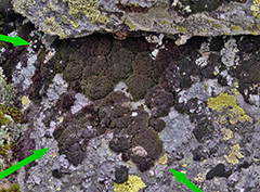 | Habitat (2; 3; 4): dry moss, probably a Grimmia pulvinata-Tortula muralis-community, with exposition to high sun radiation (up to 45 degrees Celsius, |