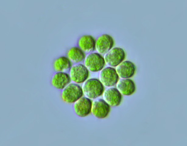 , coenobium with daughter coenobia. The mucilage around the cells is clearly visible.