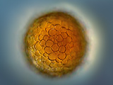 monogonont rotifers may reproduce either by parthenogenesis or sexually. Therefore they have different types of eggs. The eggs that are produced while reproducing parthenogenetically are diploid and are either carried by the female (eg. Anuraeopsis, Brachionus), deposited near the sheath (eg. Collotheca; Ptygura) or they develop inside the mother untile the daughter is born (eg. Asplanchna; Rhinoglena). These eggs are called amictic eggs, becaues they develop without mixis (fertilization partenogenetic reproduction enables the population to increase rapidly because there is no need for finding a sexual partner, which is always an advantage if the distance between specimen is large, eg in lakes or ponds.)