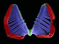 | The basic schematical diagram, however, looks a little bit different from the structure above. Here are the typical 4 main parts of the trophi: unci, rami, manubria and fulcrum. |