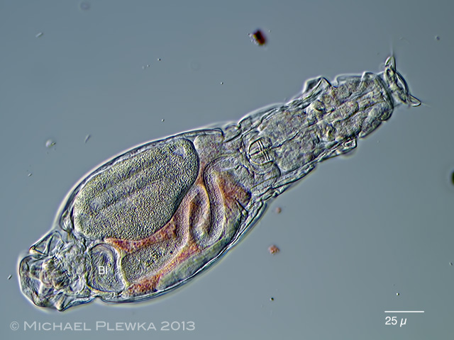 | Adineta barbata: focal plane on the ciliated stomach lumen which ends in the bladder (Bl). (3) |