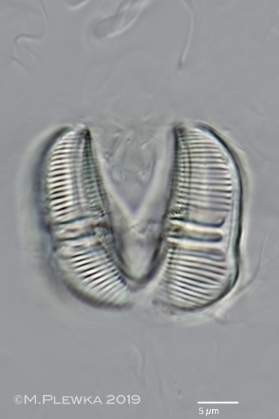 | Adineta sp.18; two aspects of the ramate trophi with dental formula 2/2; left: cephalic view; right: caudal view. From the left image the number of minor teeth is 29 in each uncus. Ramus length (RaL) is 21µm. (1) |