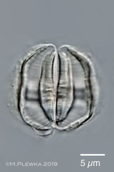 | Adineta sp. 35 cf minor; two aspects of the anterior part/ head of a gliding specimen, dorsoventral view. Left: optical median section, focus plane on the rostum lamella and the hypodermis cells. Also visible is a part of the buccal field and the pharyngeal tube. Right: focus plane on the ciliary field and the rake apparatus. The number of U-hooks (NoUH) is 5/5. (1) |