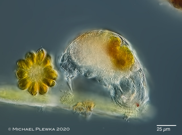| Cephalodella catellina, may also feed on bacteria growing on a desintegrating alga. (7) |