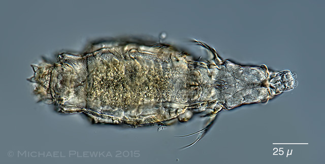 | Macrotrachela zickendrahti: dorsal view. Focus plane on the fin-like appendages of the integument which end in several bristles. |
