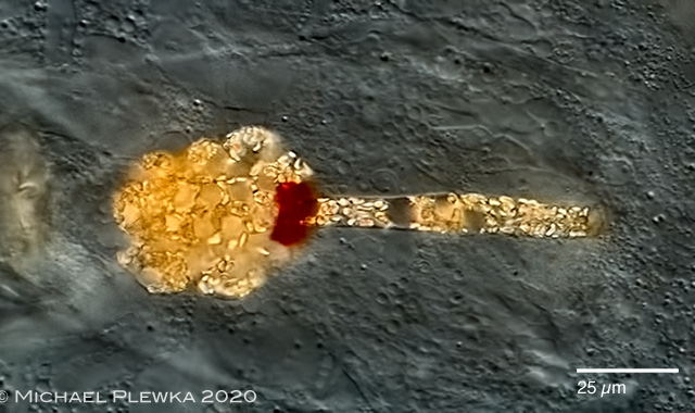 | Notommata glyphura; another aspect of the RCO and red cerebral eyespot. The duct of the RCO is partly filled with light refracting bodies ("bacteroides") (2) |