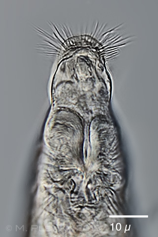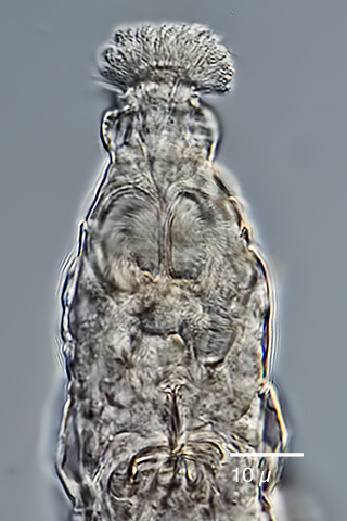 | Philodina brevipes; rostrum lamella with many long cilia. |