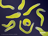 Some members of the "Berliner Mikroskopische Gesellschaft" (BMG) had a meeting at the German coast of the Baltic Sea and -among other studies- examined the mesopsammon fauna of the beach of Priwall opposite of Travemünde. The organisms living between the sand grains are highly adapted to their environment. Some organisms that could be observed are: otoplanid flatworms, hairybacks like Turbanella sp. or Hetereoxenotrichula, but also ciliates like Trachelocerca cf sagitta. |