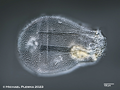 Because of Covid the annual workshop at the nature reserve "Heiliges Meer "on limnic plankton took place in November. This gave the chance to study the plankton in a different season of the year. But there are also other protected habitats which are a rich source for rare microscopic critters. Interesting observations were: an unknown type of ectoparasites on Filinia longiseta, the rare Mytilina trigona, a strange behavior of Stentor multiformis, Vasicola ciliata, and other rare ciliates. |